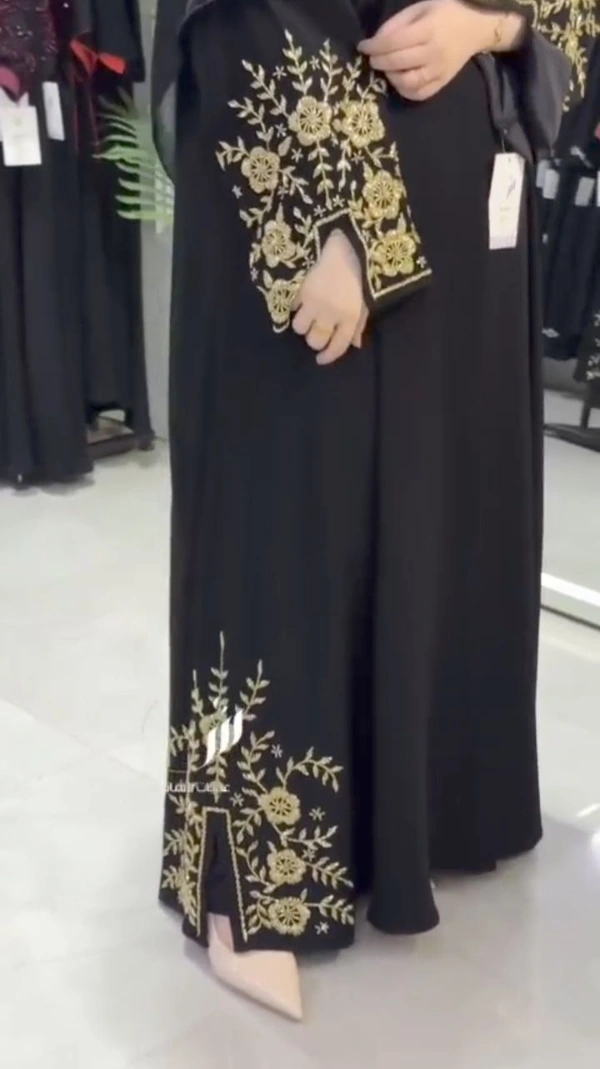Abaya is made up of imported Zoom fabric it does have handwork at bottom and sleeves with designer cut.