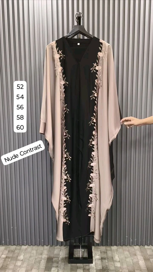 Abaya is made up of imported tiktok fabric and it does have embroidery at front and back and comes along with dupatta