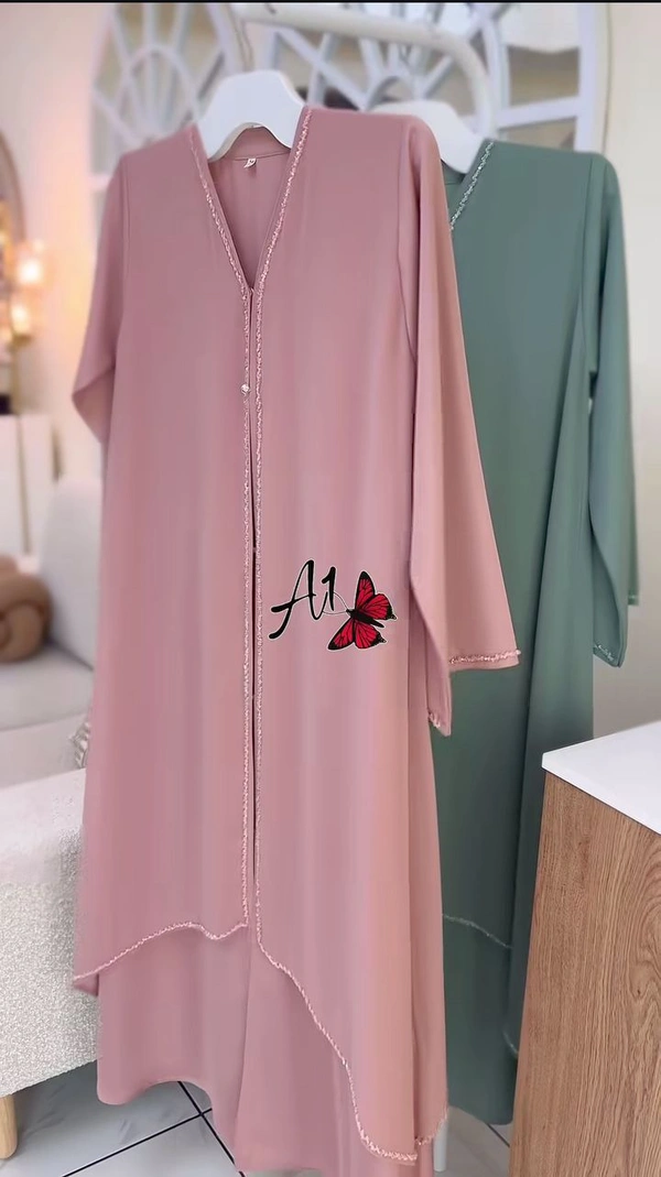 Abaya is made up of Korean fabric it does have handwork at front and back and comes along with dupatta it's imported from UAE