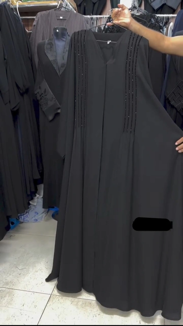 Abaya is made up of imported Nida fabric it does have handwork over it. It's front open abaya