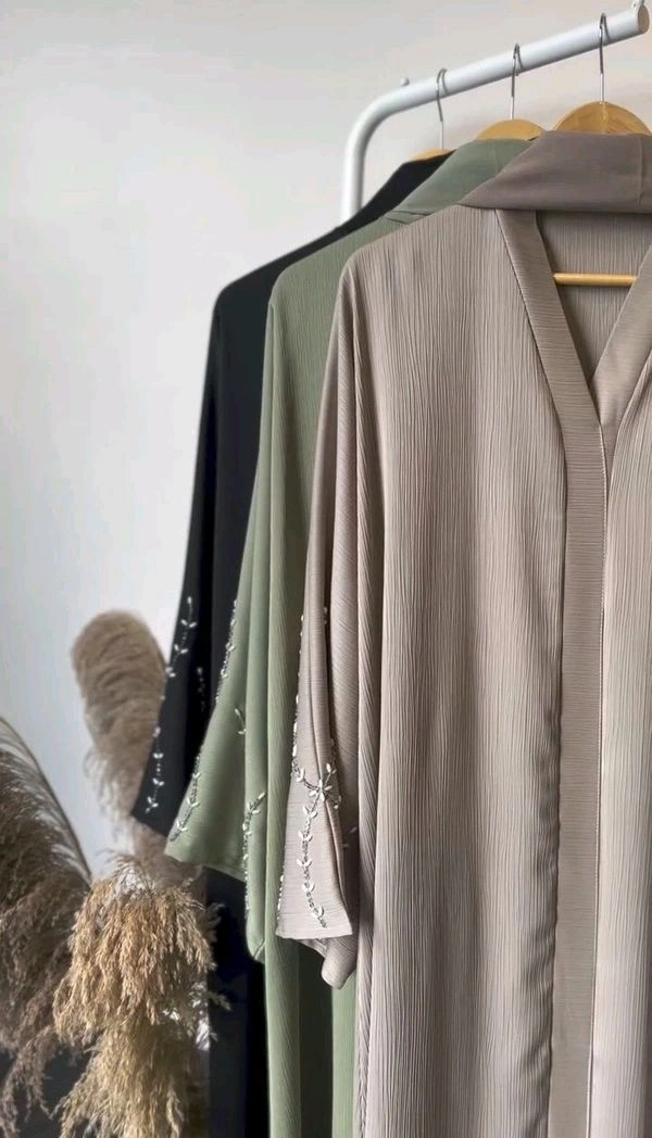 Abaya is made up of Korean zoom Fabric and it does have handwork studded over sleeves and it does have umbrella cut sleeves and comes along with dupatta