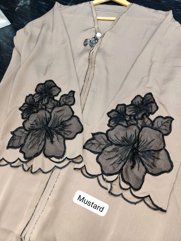 Al Zahra Abaya Handwork Abaya Imported Zoom Fabric (Mustard)