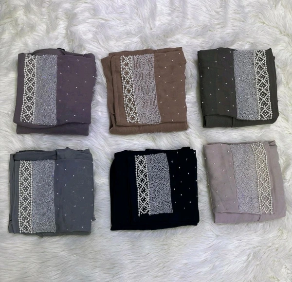 Abaya is made up of imported Nida fabric and it does have pearl and and diamond work studded over it comes along with dupatta