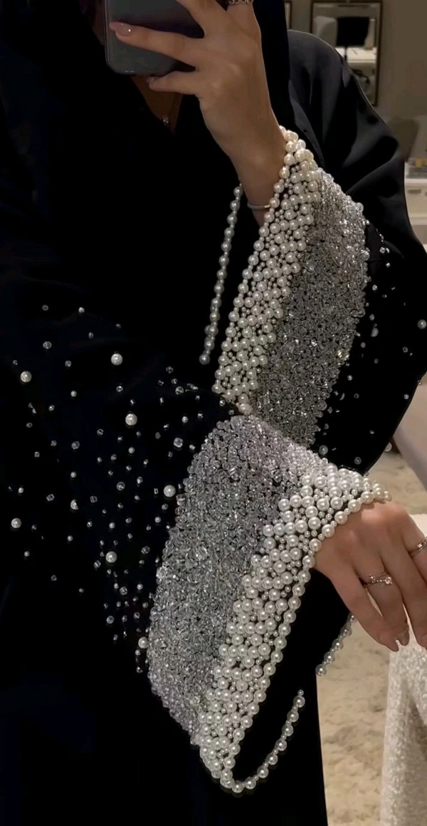 Al Zouj Abaya Pearl Sleeves Abaya Korean Nida Fabric Handwork Abaya (Imported)