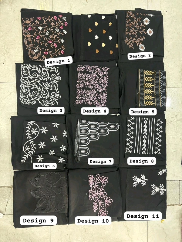 Abaya is made up of firdous fabric it does have embroidery at sleeves and it doesn't have shawl